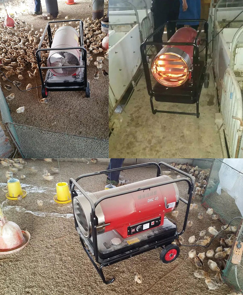 为猪舍、禽舍提供持续供暖,比如黑龙江冬季猪舍用的55KW暖风机。