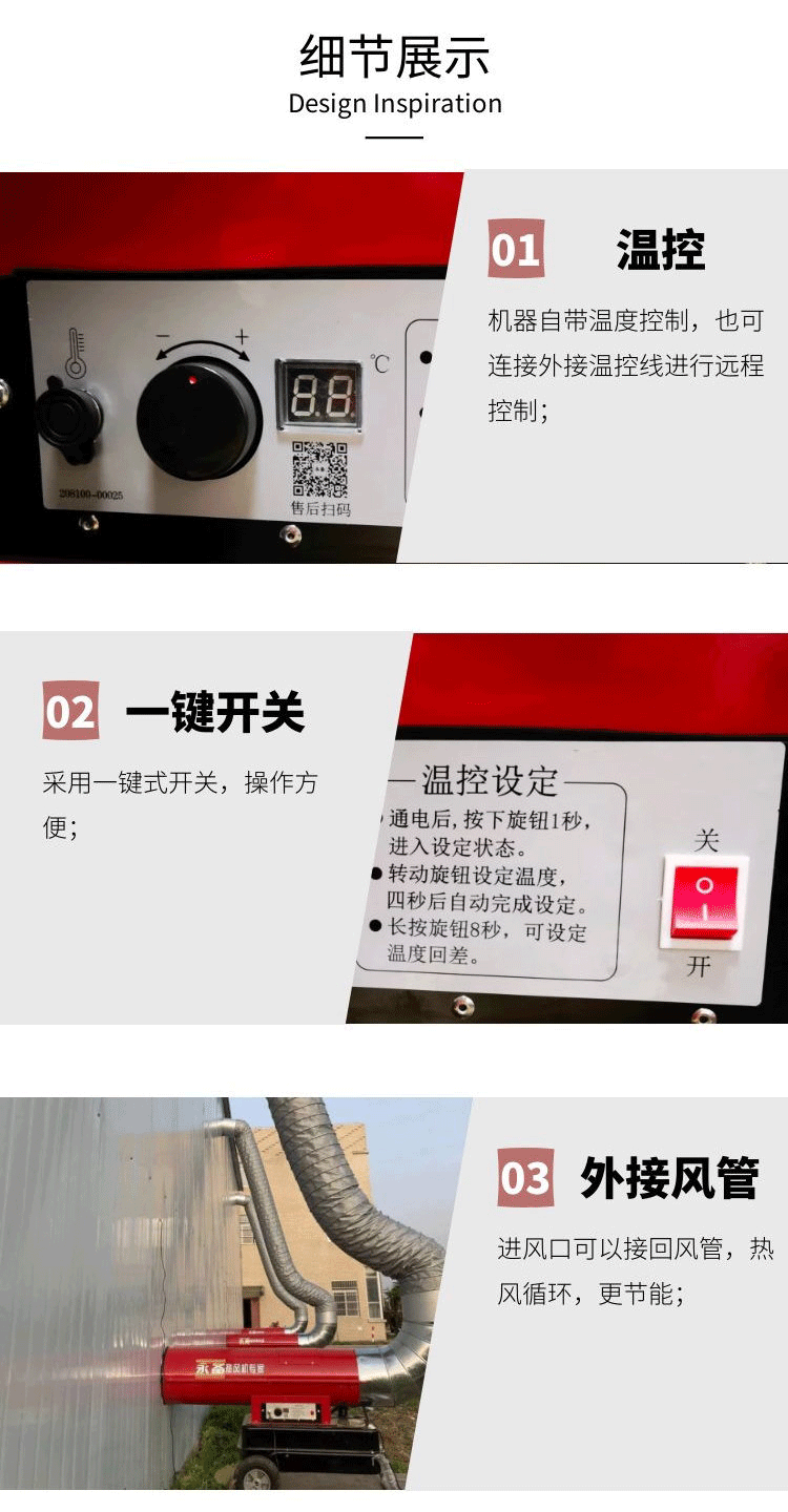 1.ST100采用柴油或煤油为燃料,机器后部的强力风机将燃烧产生的热量吹出