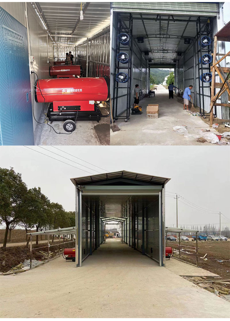 为猪舍、禽舍提供持续供暖,比如黑龙江冬季猪舍用的55KW暖风机。
