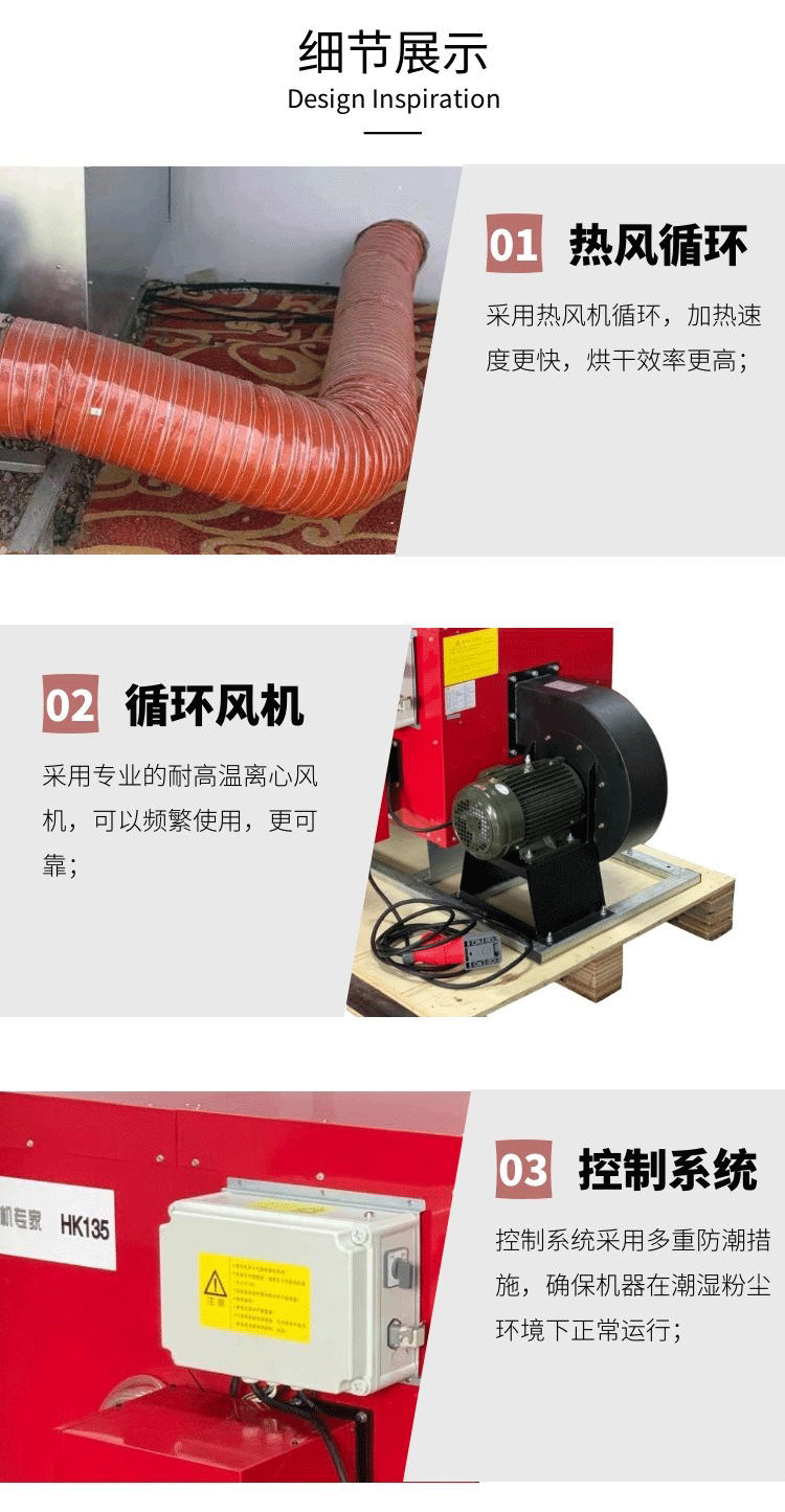 5.由于采用热风循环,加热的速度更快,烘干效率更高,节约费用