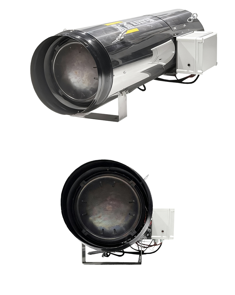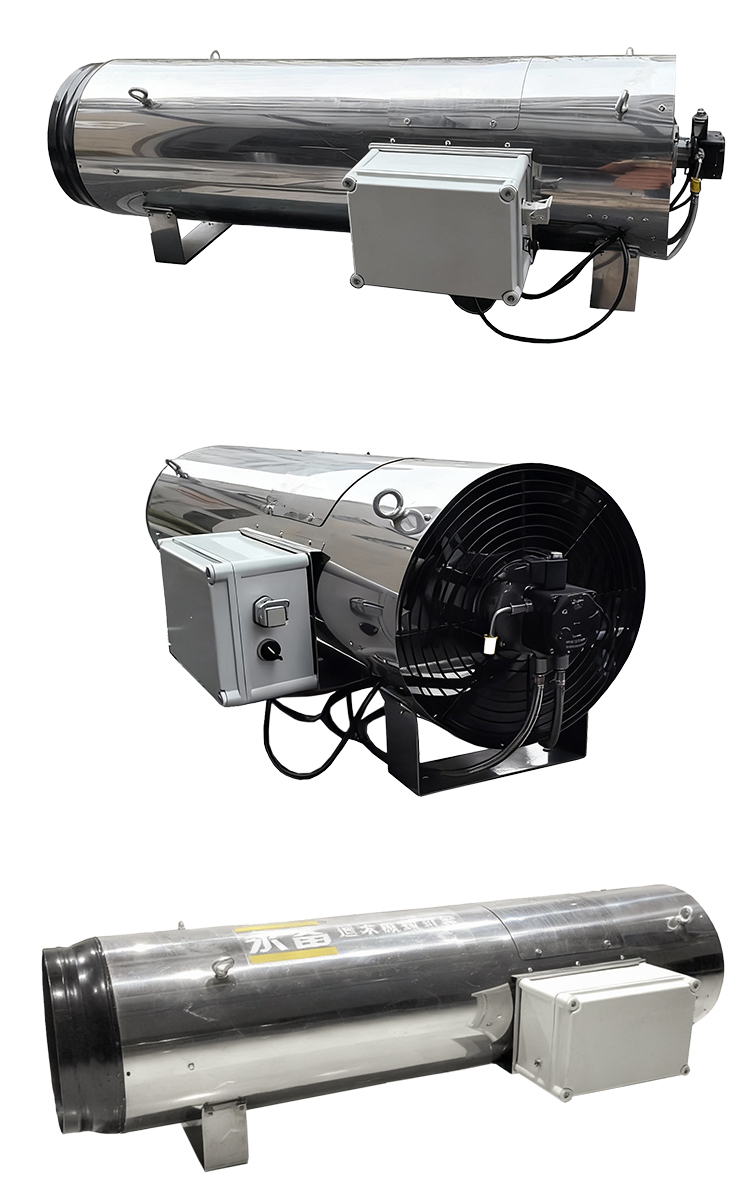 为猪舍、禽舍提供持续供暖,比如黑龙江冬季猪舍用的55KW暖风机。