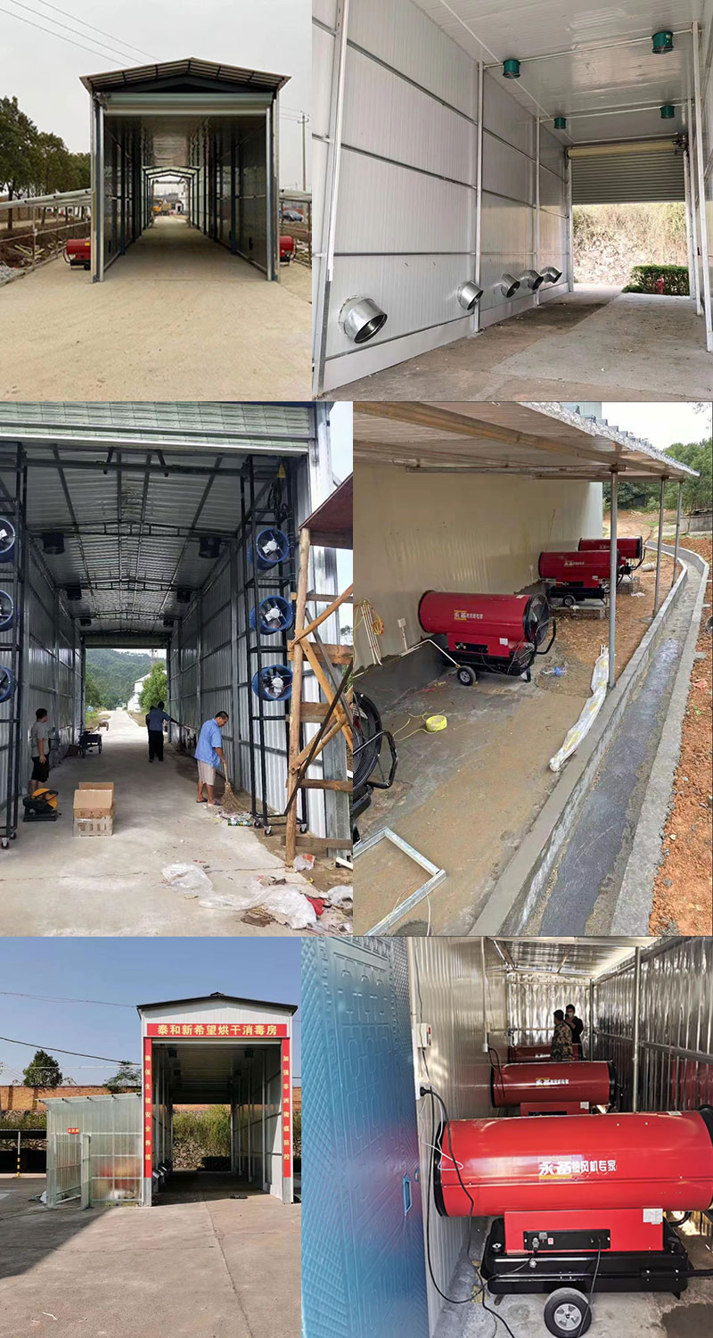 为猪舍、禽舍提供持续供暖,比如黑龙江冬季猪舍用的55KW暖风机。